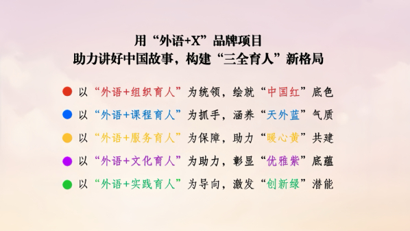 一直以来,学校坚持“为党育人、为国育才”的初心使命,深入推进“三全育人”综合改革,打造“外语+X”育人品牌活动,融合组织育人、课程育人、文化育人、实践育人、服务育人体系建设,构建“外语+”大思政铸魂育人平台,为向世界展示真实、立体、全面的中国贡献了天外智慧和力量。