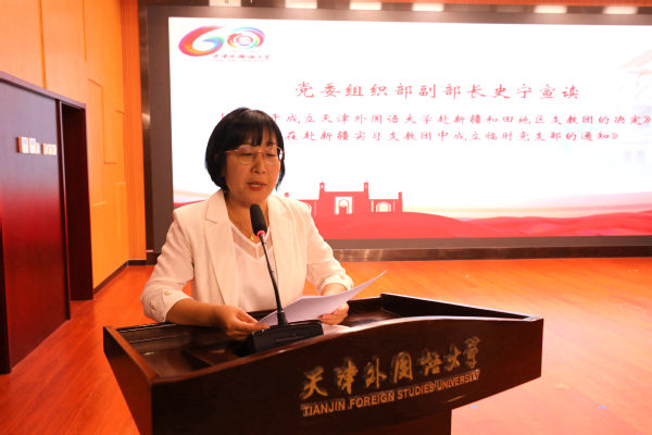 党委组织部副部长史宁宣读《关于成立2024年开云体育赴新疆和田地区支教团的决定》《关于在赴新疆实习支教团中成立临时党支部的通知》。