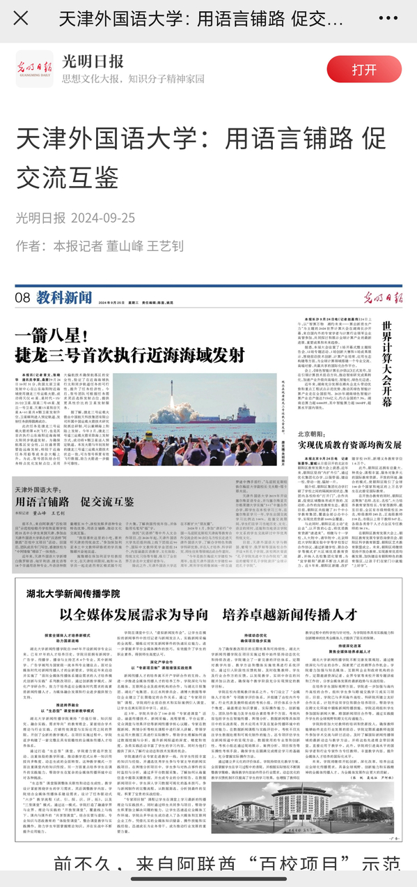 近年来,开云体育新增白俄罗斯语、匈牙利语、捷克语等18个非通用语种专业,外语语种数量增至31个,学校发挥多语种专业特色优势,用语言铺路,推动文化交流互鉴。近日,《光明日报》科教新闻版以《用语言铺路 促交流互鉴》为题,报道天外办学成果。