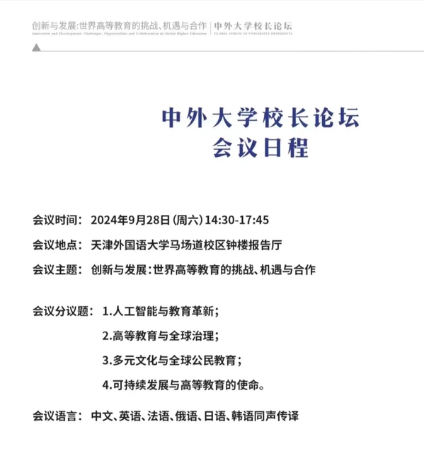 创新与发展:世界高等教育的挑战、机遇与合作 中外大学校长论坛预告