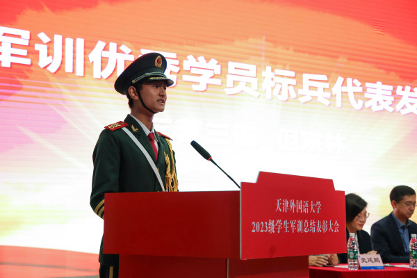 一营三连马熙然同学和三营三连但宗林同学作为优秀学员标兵代表发言,分享了自己的收获与成长,表示要将军训期间的优良作风带到未来的学习工作中,强心志、壮筋骨、长才干,争做德智体美劳全面发展的社会主义建设者和接班人。