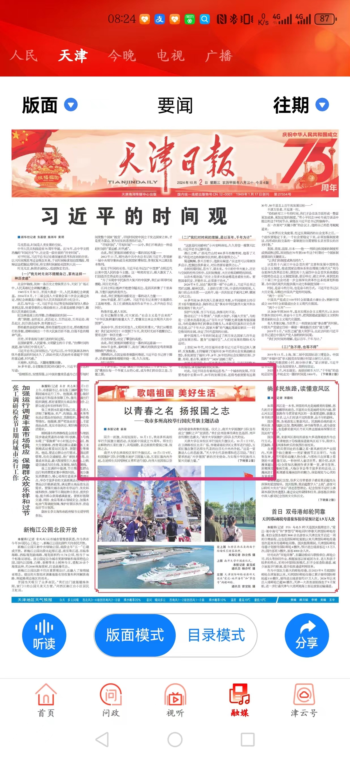 【天津日报】天津日报头版报道我校及我市相关高校国庆升旗主题活动