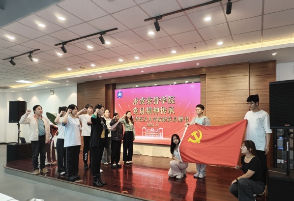 最后,王颖带领金融学专业学生党支部的党员们面向党旗庄严宣誓。面对鲜红的党旗握起右拳时,所有人都再次重温了自己入党宣誓的那一庄严时刻。