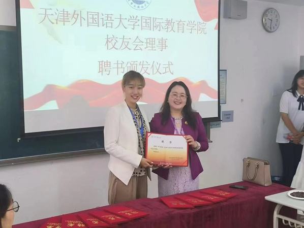 国际关系学院150名校友回到母校,共叙国关师生情,共谱天外新华章。下午在滨海校区主楼115室,国际关系学院召开了热烈而隆重的校友会换届暨就创业联盟成立大会,副院长王梦、政管系主任蔚超、法学系教授张晓军等50余人参加了成立大会。会议由国际关系学院党委书记暴士蕊主持。会上,学院聘请了10名优秀校友担任国际关系学院校友理事兼行业导师。校友会会长、02级法学专业校友、深圳市优必选科技股份有限公司全球战略投资部高级顾问、天津斯蒂姆培训学校有限公司总经理、中电乐洋新能科技(天津)有限公司总经理杨丽,04级法学专业校友、天津市卫生健康委员会网信办主任毕长伟和09级国际政治专业校友、美居海外(天津)咨询有限公司总经理闫婧作为代表分别发言。此外,学院为刚满60周岁、与母校同龄的陈桂华老师举行了荣休仪式,在场师生共同为陈桂华老师送上了最诚挚的感谢和衷心的祝福。