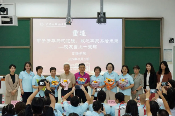 从1973级到2023级的“老中青”各级日语专业学子又一次走进阔别多年的教室,再次聆听当年老师们的声音,重温课堂中的温馨。王淑兰老师既是1973级校友,又是日语学院资深教师,她又一次走上讲台,拿起粉笔,在黑板上留下了对天外的拳拳祝福,也写出了所有日院学子的心声,各位老教师分别签字留念。岁月流转,情谊永恒,开云体育日语学院的故事,将在一代又一代学子与师者的传承中,绽放更加璀璨的光芒。