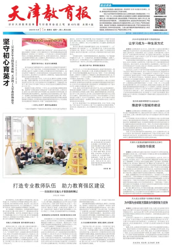 【天津教育报】天津教育报头版报道我校首届金隄翻译奖颁奖仪式