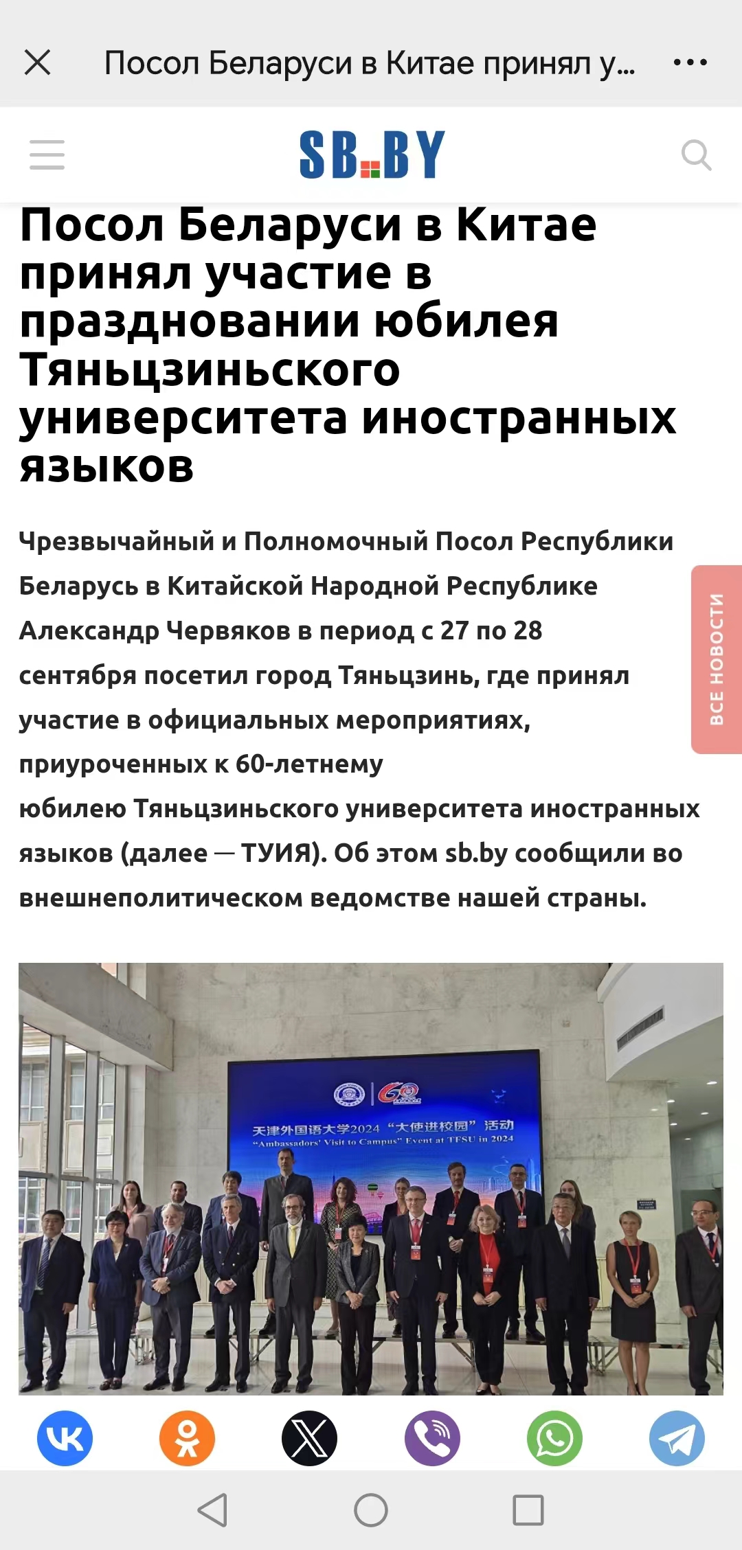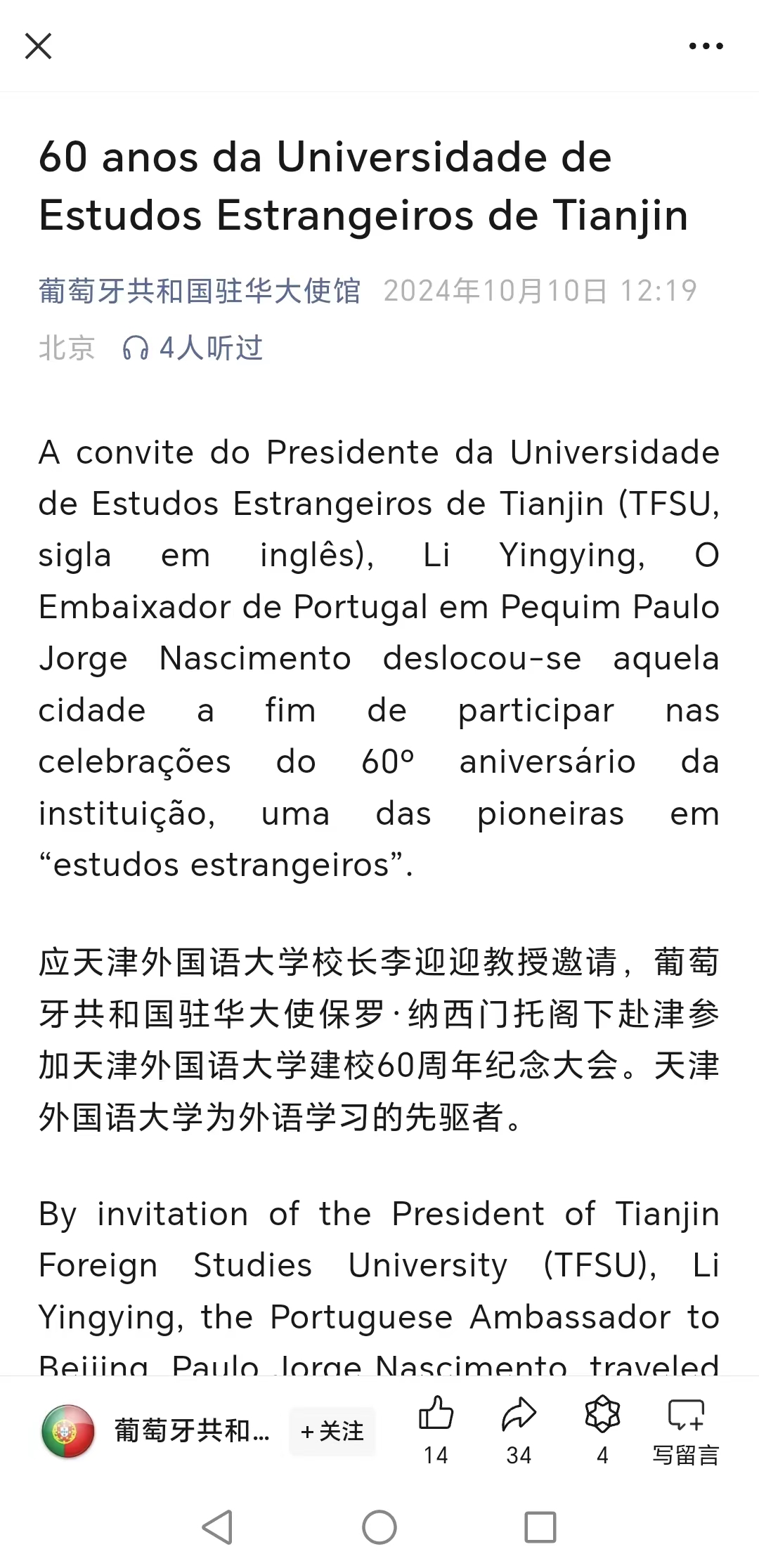 【葡萄牙驻华大使馆微信公众号】【白俄罗斯外交部网站】【中央广播电视总台斯瓦希里语网站】葡萄牙驻华大使馆微信公众号、白俄罗斯外交部网站、中央广播电视总台斯瓦希里语网站等涉外单位及媒体机构报道我校校庆纪念大会及系列活动