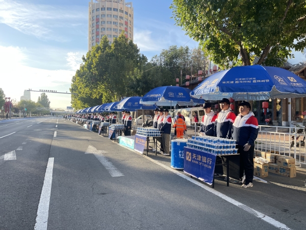 志愿服务过程中,他们展现了极高的热情和专业的素养。根据2024天津马拉松组委会的精心安排,天外志愿者们主要负责沿线的水、饮料等能量补给工作。为确保服务万无一失,开赛前,志愿者们在指导下进行了多次模拟演练。从精准摆放补给物资,到高效有序地发放给每一位参赛者,所有细节都经过反复推敲与优化。志愿者们相互协作、默契配合,在比赛中为参赛者提供了最及时、最贴心的服务。从前期筹备到比赛结束,志愿者们都以饱满的热情和专注的态度完成了工作。