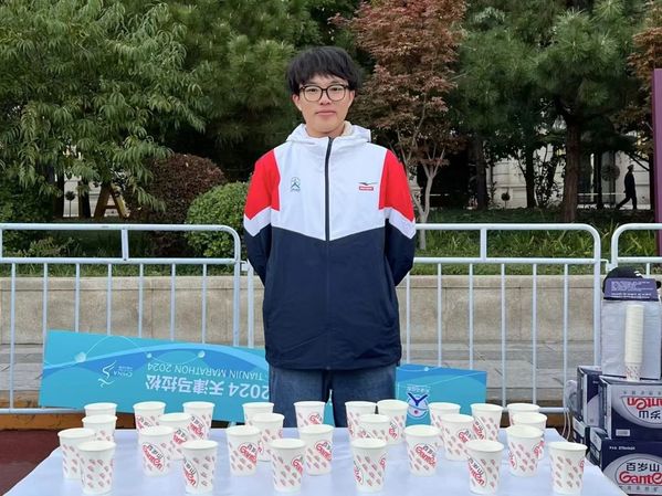 很荣幸能成为2024天津马拉松志愿者的一员,我所在的岗位是全终水站,主要任务是为完赛的选手们提供饮水服务。我们组的志愿者们在全程马拉松的终点区,摆好一排排水杯,确保每位完赛运动员都能迅速地拿到水,做好饮水保障工作。期待未来能继续参与这样的志愿活动,继续发扬“奉献、友爱、互助、进步”的志愿精神,为他人带去帮助和快乐。
