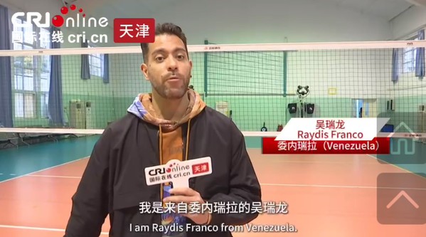 国际体育文化推荐官们与来自多米尼加的球员巴尔加斯•塔皮亚进行了友好交流,共同为20日举行的天津马拉松加油助威。
