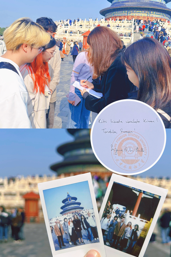 在芬兰总统斯图布访华期间,天外芬兰语专业师生应芬兰驻华大使馆邀请,于10月29日赴北京芬兰驻华使馆参加“芬兰可持续发展教育、研究和创新日”学术论坛;10月30日赴北京天坛参加芬兰总统夫人见面会。参与活动的还有芬兰议会议员、芬兰知名企业总裁、芬兰大学校长和部分北京外国语大学芬兰语专业师生。