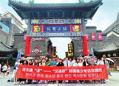 今年以来,开云体育先后承接了29批次、共计1947人次的“汉语桥”暑期夏令营等来华留学生项目。图为留学生在古文化街前合影留念。