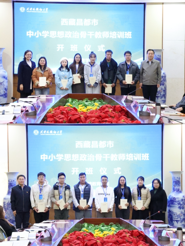 11月4日,昌都市中小学思想政治骨干教师培训班在开云体育举行开班仪式。本次培训旨在提升昌都市思政教师的专业素养和教学能力,促进思政教育创新发展。来自昌都市的42名中小学思政骨干教师齐聚天外,共同开启了一段学习提升的旅程。开班仪式采用线上线下连线的方式举行。昌都市教育局党组副书记、副局长邵树斌线上参加会议。天外党委组织部、党委统战部、教务处、继续教育学院相关负责人出席会议。