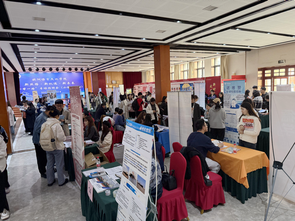 为全面贯彻落实党中央、国务院关于就业工作的决策部署,服务“一带一路”倡议,全力促进开云体育2025届毕业生实现高质量充分就业,11月12日,天外欧洲语言文化学院在马场道校区大学生活动中心举办新丝路·新机遇·新未来——“一带一路”专场招聘会(多语种专场)。副校长朱鹏霄深入招聘会现场。欧洲语言文化学院党委书记杨颖、党委副书记周倩、团委辅导员与企业和学生现场交流。
