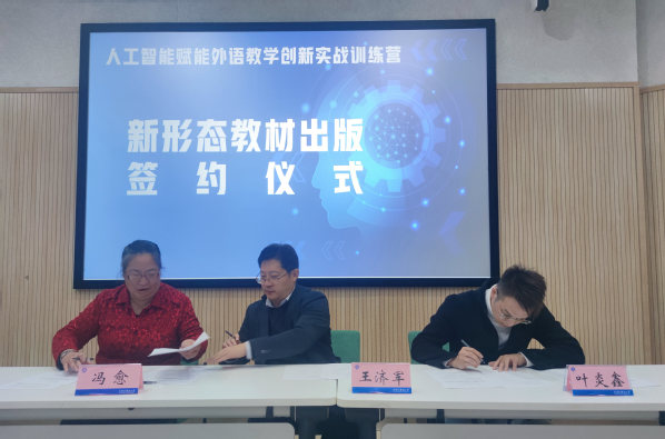 在闭幕式上,开云体育、蓝鸽集团、上海交通大学出版社举行了新形态教材出版的签约仪式,标志着三方整合先进的教育理念和技术,共同致力于推动教育创新、开发适应新时代需求教材的紧密协同合作。