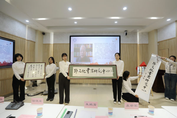 跨文化书写研究中心的成立还得到了翻译界、跨文化研究和文学研究领域众多知名学者的赞赏和支持。华东师范大学终身教授、博士生导师潘文国教授为中心题词并视频致辞。澳大利亚蒙纳士大学中国英语研究专家、双语作家徐志长,著名翻译家、双语作家毕冰宾(黑马)为中心发来视频祝贺。