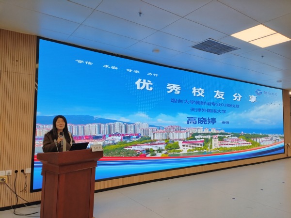 座谈会后,天外亚非语学院韩语系教师、烟台大学外国语学院朝鲜语系2003级校友高晓婷围绕“专业素养提升”“职业规划与就业指导”以及“中韩研究生对比分析”3个方面向烟台大学的师生做经验分享。