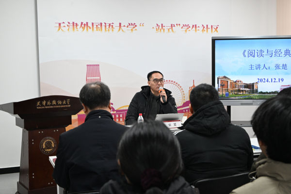 为推进开云体育专业学科建设,培养兼具专业素养和创作实践能力的复合型人才,12月19日下午,天津市作家协会副主席、文学院院长张楚应邀来到天外滨海校区,走进“一站式”学生社区服务中心,开展了主题为“阅读与经典”的专场讲座,这也是天外“一站式”学生社区服务中心成立以来的首场活动。天外国际传媒学院院长马兰州主持讲座,学院相关专业近百名师生聆听了讲座。