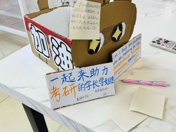 天外学子通过制作手工作品,为考生送上祝福,让他们感受到爱和支持!“一站式”学生社区祝愿所有的考研er披荆斩棘,勇往直前,如愿上岸!