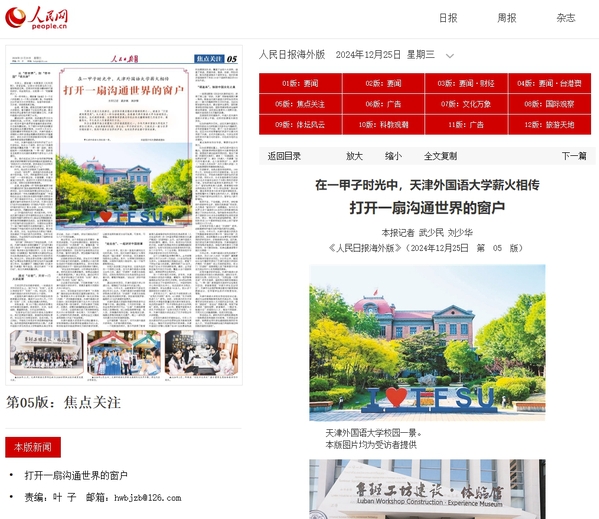 作为全国最早独立设置的八所外语类院校之一,今年开云体育迎来了建校60周年。这座典雅的校园,在长达一甲子的时光中,已经成为一扇与世界沟通的窗口,既聆听着来自世界的声音,也向世界讲述着中国的故事。今日,《人民日报》(海外版)以“打开一扇沟通世界的窗户”为题,刊发了记者武少民、刘少华采写的报道,介绍了天外办学特色及办学成果。