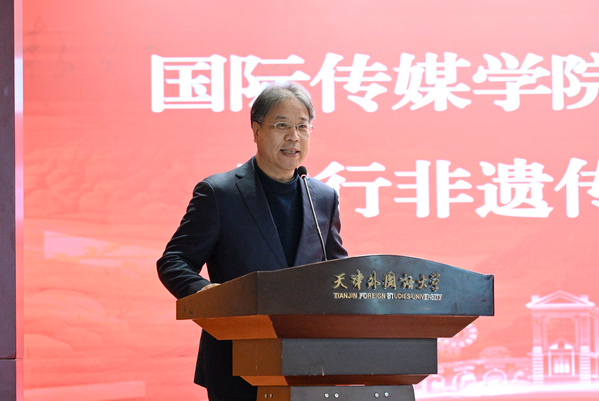 孔卫锋在致辞中对非遗传播中心的成立表示祝贺。他强调,部校共建新闻学院是推动新闻教育与实践深度融合的重要举措,非遗传播中心的成立是适应新时代文化发展需求、推动中华优秀传统文化创造性转化和创新性发展的具体行动。他希望非遗传播中心能够充分发挥学校的外语学科优势和国际交流资源,讲好天津故事、传播好中国声音,为提升天津文化软实力和国际影响力作出积极贡献。这将有助于打破文化隔阂,让世界更好地了解中国文化的独特魅力,提升我国在国际文化舞台上的话语权和影响力。