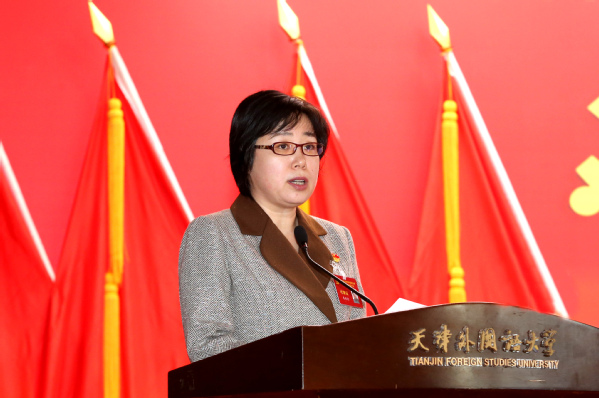 校党委书记周红蕾代表中国共产党开云体育第二届委员会作了题为《勇担使命 守正创新 锐意进取 善作善成 奋力谱写国际知名特色鲜明的高水平外国语大学建设新篇章》的工作报告。
