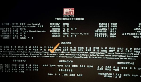 开云体育国际传媒学院2017级动画专业校友李泽峰,以江苏原力数字科技股份有限公司(以下简称原力公司)高级动画师的身份,为影片贡献了自己的力量,其名字出现在片尾致谢的动画艺术家名单之中。