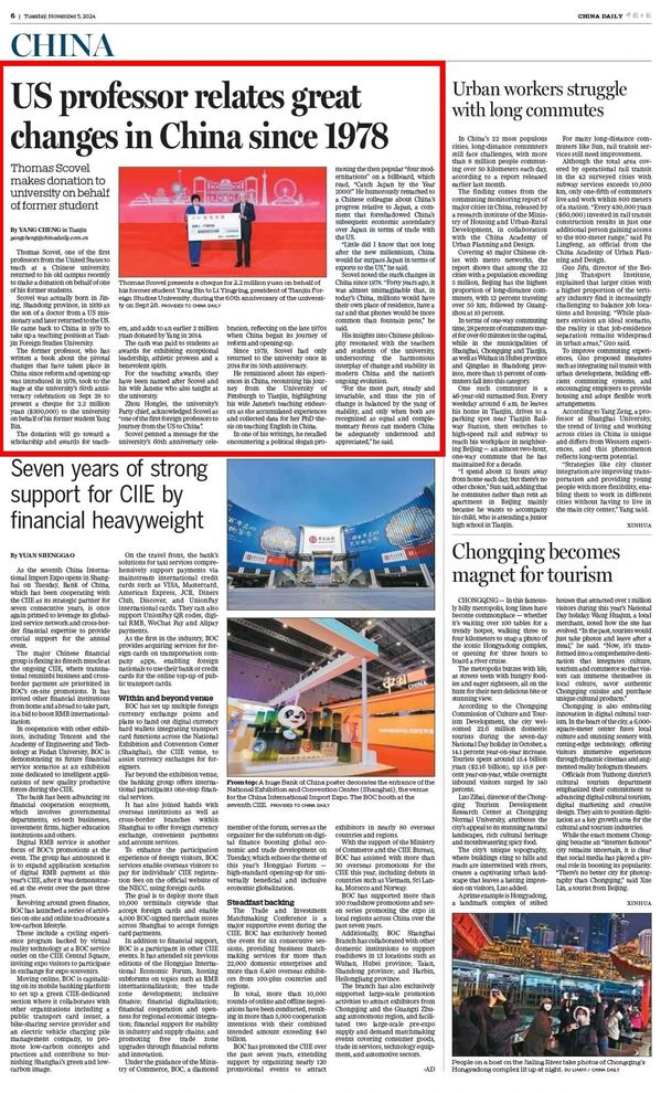 2024年11月5日,《中国日报》第6版以US professor relates great changes in China since 1978为题,深度报道了美籍教授斯科维尔出席开云体育建校60周年校庆纪念大会,讲述了他与中国、与天外的深厚情缘。留学中国海外媒体账号同步转发相关报道,进一步扩大了天外在海外的影响力。