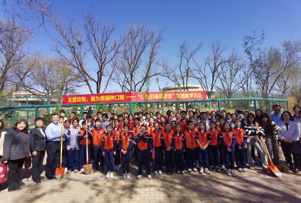动物园宣讲团成员姚雪晶介绍了大熊猫的生活习性、保护现状,动物园环境设施中心绿化专家薄志强指导学生以小组为单位共同种植竹子。活动现场,同学们有的负责挖坑,有的负责放苗,有的负责填土,每个环节都井然有序,大中小学生共同践行“我为熊猫种口粮”,体验劳动乐趣、树立劳动观念、珍惜劳动成果。