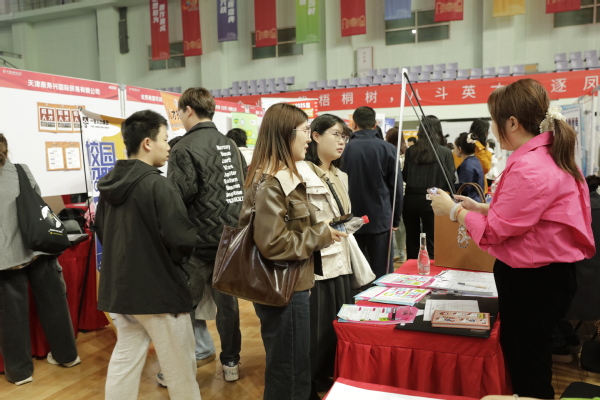 为深入贯彻党的二十大和二十届二中、三中全会精神,全面落实就业优先战略,促进毕业生高质量充分就业,搭建校政企供需精准对接平台。3月25日下午,我校联合河西区人才办、河西区人力资源和社会保障局在马场道校区综合体育馆成功举办“‘职’达天外,成‘就’梦想”2025届毕业生春季校园双选会暨全国城市联合招聘高校毕业生春季专场活动。本次招聘活动通过“AI+就业”模式,构建人岗精准匹配、能力数据画像、服务全程覆盖的智慧就业服务体系,吸引包括天津轨道交通集团、英雄游戏、郑州宇通集团、宜家物流服务(中国)有限公司等173家优质企业参会,提供涵盖外语服务、数字贸易等领域的岗位700余个, 1000余名学生现场参会。