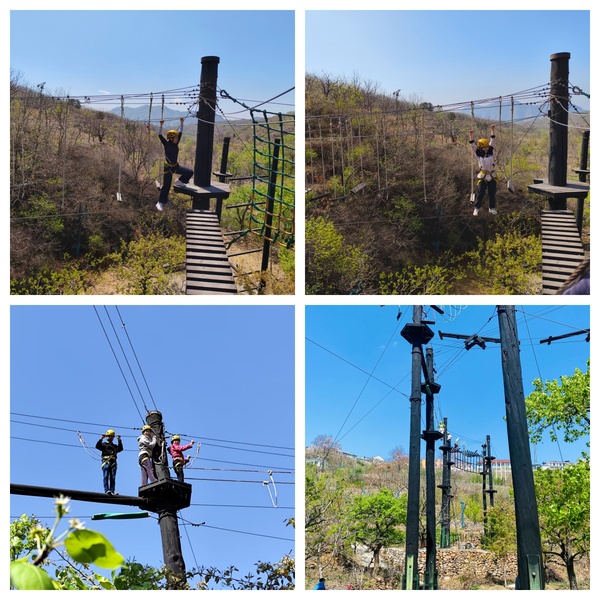 签约后,校企双方开展了“绳网芭蕾”精英培训。本次培训不仅是亚非语学院精英训练营的一项技能训练,更是一次自我探索与心灵的锤炼之旅。培训项目涵盖攀岩、高空断桥、高空地震桥、空中DNA螺旋、高空秋千等,旨在通过培训项目激发师生的内在潜能,促使大家在挑战中实现个人的成长。培训过程中大家始终铭记团队的力量,做到了“以心为索,以信为网”,用信任和团结编织成一张坚固的防护网,让团队精神在挑战中熠熠生辉。