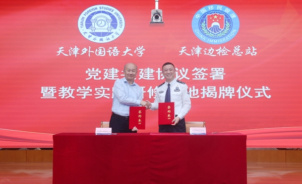 此次签署党建共建协议、共建教学实践研修基地,是双方强化党建赋能、加强战略合作、搭建人才培训平台、推动院校教学与移民管理实践深度融合的重要举措,也是立足各自职能、着眼战斗力标准、服务国家重大发展战略、助推天津高质量发展高水平开放的生动实践。双方将坚持“资源共享、优势互补、注重实效、协同发展”原则,聚焦涉外执法能力提升、国际传播能力建设、国别政策研究等重要领域,进一步整合人才资源、组织资源、阵地资源和培训资源,在深化党建共建、外事活动合作、国际传播实践、跨境犯罪治理、外语人才培养、专业课程开发等方面开展深度合作。下步,双方将进一步丰富共建载体,集聚发展要素,大胆创新实践,着力推动教育链、人才链与边检业务链深度融合,进一步提升民警队伍的综合素养,使民警在国际交流中更加自信从容、专业高效,擦亮“国门名片”,推动移民管理工作取得新成效,为天津高水平对外开放注入新动能。