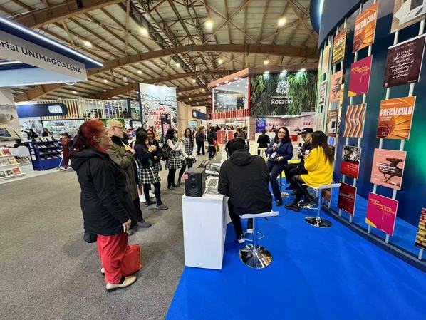 此外,书展期间,代表团还参观了科菲利亚国际会展中心主展区。在豪尔赫·塔德奥·洛萨诺大学展位,何家弘教授接受了该校“听·塔德奥”电台专访,讲述了自己从法学教授到畅销作家的转型历程,以及《血之罪》的创作背景,吸引了大量读者驻足聆听。