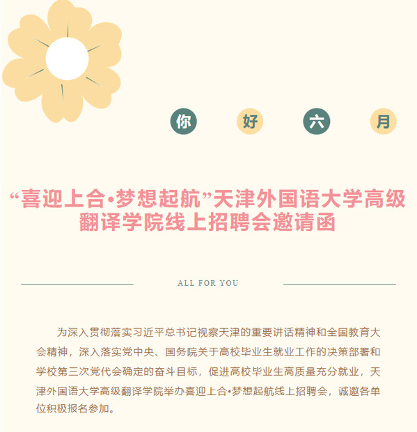 开云体育高级翻译学院举办“喜迎上合•梦想起航”线上招聘会,诚邀各单位积极报名参加。