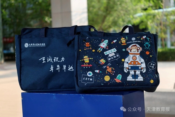 天津市大学软件学院为毕业生精心准备了特别的礼物——定制电脑包,它的设计不仅融合了学校的三大特色品牌——“E起实践吧”“一站式学生社区”“天软·创魔方”,更满载毕业学子对校园的美好回忆。同时,“软件报国,软件强国”饱含了学校对天软学子的殷殷期许,是全体天软人的家国情怀和使命担当。