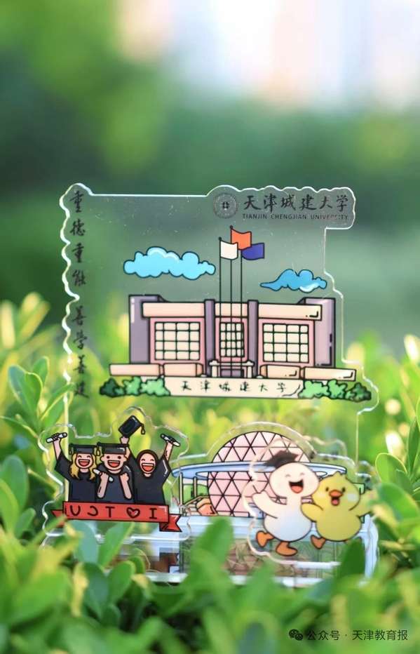 天津职业技术师范大学为毕业生精心准备了一份特别的纪念礼物——以学校标志性建筑(校门、主楼、图书馆等)为主题设计的一款冰箱贴,愿它承载着母校的嘱托与祝福,伴大家温暖前行。