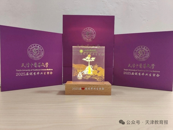 天津中医药大学为2025届毕业生打造专属毕业礼物——制作精美的桌摆件。沐人参广场之“金”,青春滚烫耀星芒;抚如意药岭之“木”,新芽终将自蔵蕤;藏天中园一滴“水”,映照山海天地广;燃同窗炽热之“火”,万里展翼赤子心;踏药山厚重之“土”,此路虽远意未央。礼物以校园湖畔之水为引,取校内草木、人参意象,融五行之韵制成。