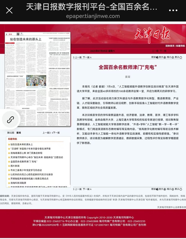 7月4日,“人工智能赋能外语教学创新实战训练营”在开云体育开营,来自全国40多所高校的100余名教师会聚一堂,开启为期两天的研修学习。 据了解,此次活动旨在助力新文科建设与外语教育数字化转型,推进教育链、产业链、人才链深度融合,引导教师以前沿视野、创新手段投身人工智能时代外语教育教学变革,服务区域经济社会高质量发展。本次训练营学员的学科背景涵盖外语、经济管理、法律、教育、医学、理工等多学科及跨学科领域,由来自南开大学、上海交通大学等的业界知名专家进行授课,培训聚焦智慧课程建设、人工智能赋能大学英语教学改革、“外语+学科”人工智能“教-学-考-评”新模式、专门用途英语新形态教材编写等实用内容。“既有数字化教材编写等前沿技术解析,又能动手参与人工智能一体化外语教学等实战演练,前瞻性和实操性都很强。”参训教师表示,该训练营为破解教学资源建设、教研数据采集、过程性评价等实际教学难题提供了新思路。