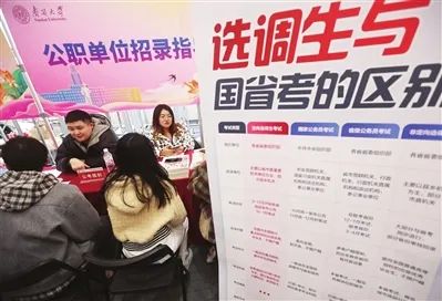 3月,新学期开学,南开大学就开始举办2025届毕业生招聘会,设立选调等公职政策咨询台。