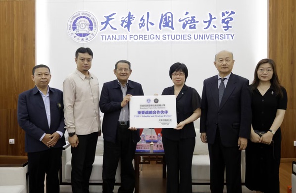会见后,双方授牌互为“重要战略合作伙伴”。努赫菲尔·哈纳尼一行还参观了校史馆、上合国家文化风情展,实地查看了印尼文化体验室装修情况以及印尼语能力考试系统运行情况。