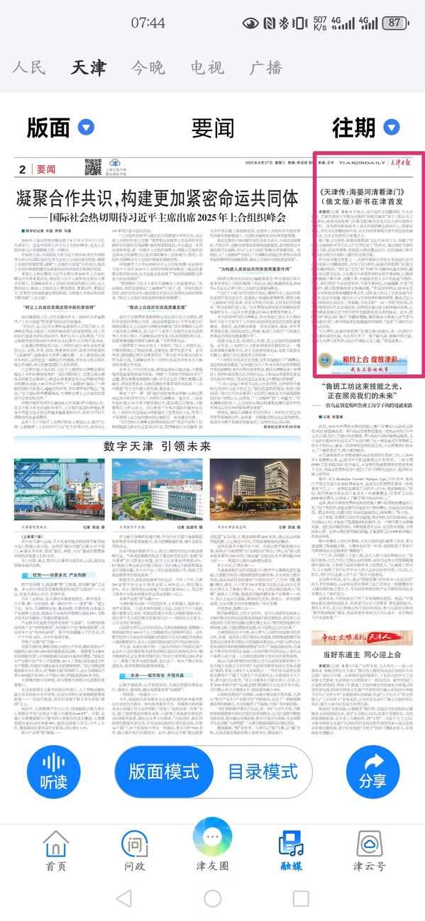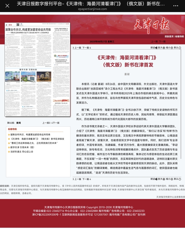 津云客户端报道《天津传:海晏河清看津门》(俄文版)新书在津首发