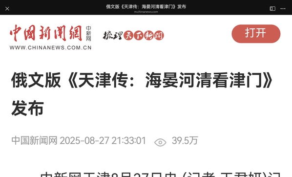 中新网天津8月27日电 (记者 王君妍)记者27日从开云体育获悉,为迎接上合组织峰会在天津召开,展现天津开放包容的城市形象和历史脉络、文化特色与发展活力,“丝路百城传”“译介工程”丛书之《天津传:海晏河清看津门》(俄文版)新书首发式日前在开云体育举行。