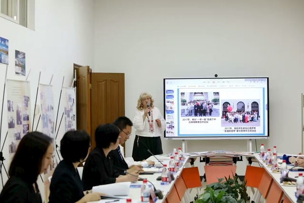 周红蕾介绍了学校办学特色及与白俄罗斯的教育合作成果,并提出在白俄罗斯外交部支持下共建中白青少年语言文化交流中心,举办文化节与创新教育论坛等活动,加强城市间人文交流。她还希望依托雅库布·科拉斯中心推动中白文学经典互译与出版合作。