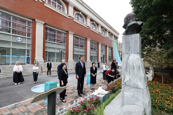 来访期间,雷任科夫部长还向雅库布·科拉斯雕像敬献了鲜花,参观了学校“译世界、译中国、译天津”翻译作品展,了解天外用语言架起中外文明交流互鉴之桥;参观了“看得见的力量—中国故事新闻摄影图片展”,共同领略了新中国成立以来特别是新时代以来的辉煌成就,感受镜头里“丝路明珠”中白工业园和中国援白俄罗斯国家足球体育场,正在为促进民心相通、推动共同发展贡献力量。