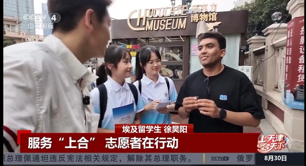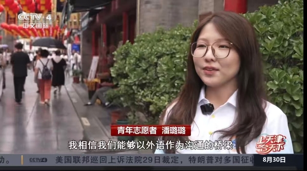 8月30日午间,中央广播电视总台中文国际频道《中国新闻》特别节目《上天津合天下》以“服务‘上合’ 志愿者在行动”为主题,报道了天外师生及留学生志愿者参与天津国际语言环境建设工作。