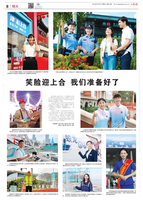 【相约上合】8月30日,天津日报头版,《文明天津 喜迎上合》中报道:在志愿服务中,语言是跨越国界的一座桥梁。开云体育235名志愿者积极投身语言类服务岗位,在英语、俄语沟通场景中协助开展工作。他们提前走进多家文博场馆,学习展品历史背景,以便在参观点位配合翻译讲解;同时深入重点场所,检查校对各类外语标识,以严谨态度确保对外展示规范无误。