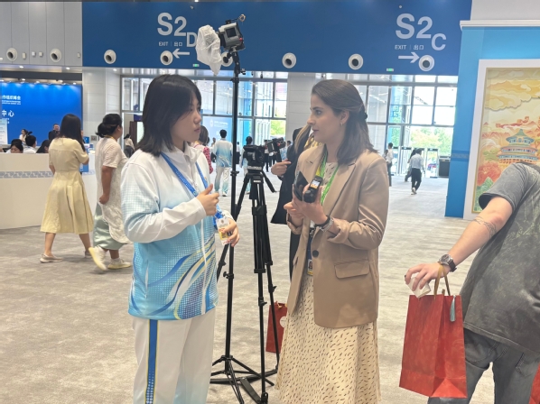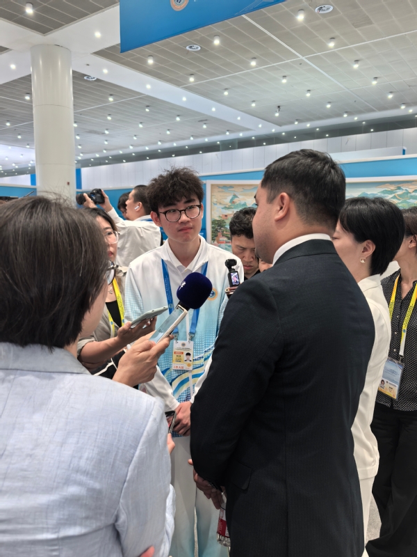 新闻发布组志愿者承担发布会全流程现场保障,从媒体签到引导、同传设备分发回收,到现场秩序维护与话筒传递,每个环节均需严谨细致、高效协同。面对各国媒体,志愿者以专业外语能力提供精准服务,及时响应突发需求,确保发布会顺畅进行。这场高规格外事活动的历练,让他们对“讲好中国故事”有了更深刻的理解,更坚定了用专业与真诚传递中国声音的信念。