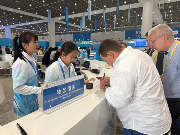 综合服务台的一大亮点是人形机器人“小合”。天外俄语和英语专业的志愿者们协助国内外媒体熟悉其功能并开展互动。服务台两侧配备了透明屏翻译机,支持多语种实时翻译。志愿者们积极帮助各国媒体沟通交流、实时解决问题,极大提升了服务效率。此外,综合服务台还提供信息咨询、预约预订、资料发放、物品租借及失物招领等服务。天外志愿者们沉着应对、主动协助,成为连接各方需求的“高效中转站”。