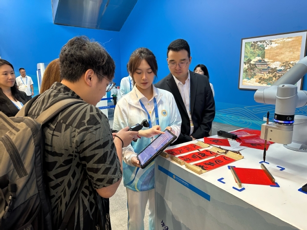 科技展区的志愿者们不仅积极为外宾答疑解惑,也亲身体验到科技发展带来的新质生产力,以及人工智能为国际交流创造的新机遇。他们主动学习前沿技术知识,协助向外宾介绍AI如何更高效融入现实生活,并借助数字技术手段,帮助嘉宾沉浸式体验天津传统文化,增强互动性与参与感。天外志愿者充分发挥语言与专业优势,在峰会框架下推动各国代表感知中国科技与人文融合的独特魅力,展现新时代青年的专业担当。