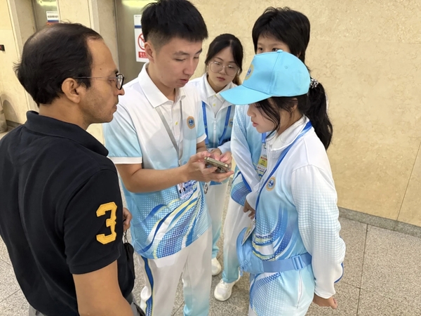 志愿者服务组工作分为三大板块:一是协助信息统计与上传下达,确保需求精准流转;二是协调车辆调度,保障志愿者准时抵达岗位;三是在“志愿者之家”提供暖心服务,备足饮用水、食物,关注伙伴情绪,通过聊天加油等方式助力志愿者保持最佳状态。他们是峰会服务的“隐形守护者”,用细致关怀为前方志愿者提供坚实后盾。